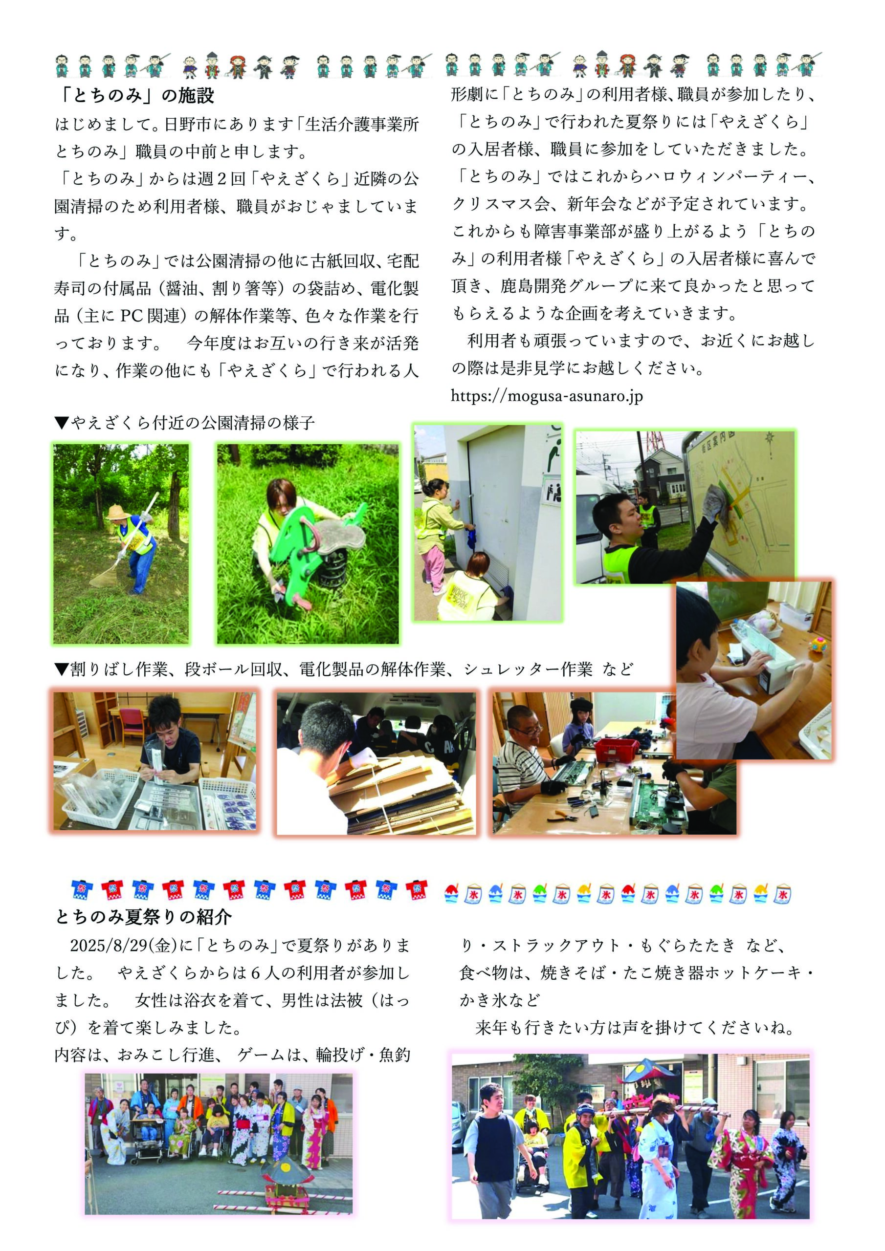 弊社は、年齢や障がいの有無にかかわらず互いに支え合い、誰もが安心して暮らすことができる【共生社会】を柱とした地域社会の実現に向けて動き出しております。